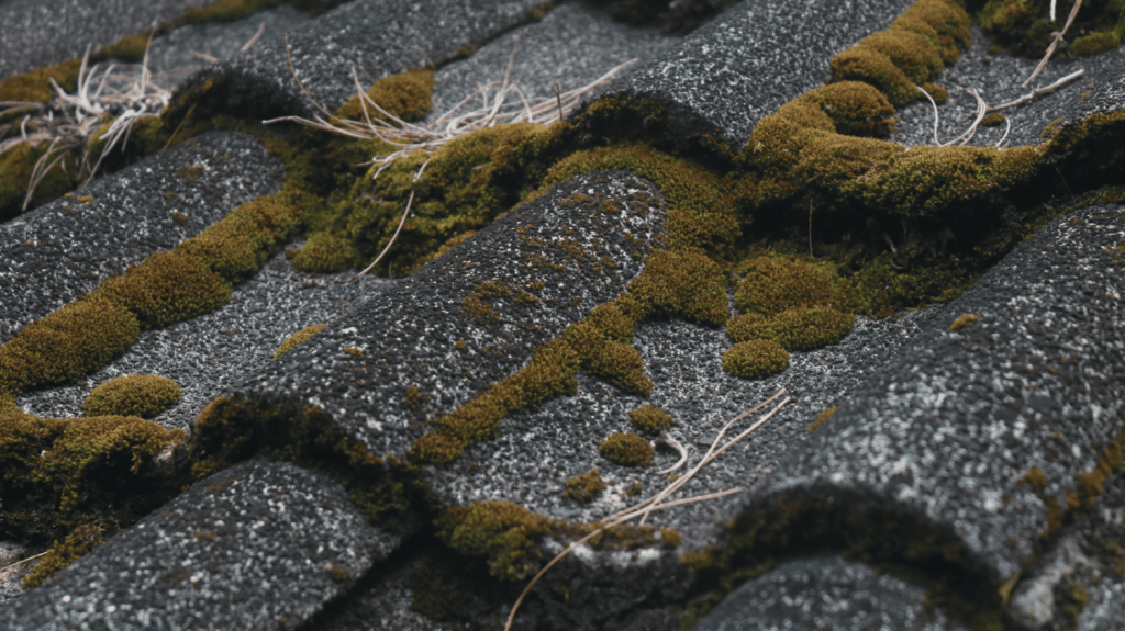 Apparition de mousse, une façade décrépie ou un déchaussement de tuiles,